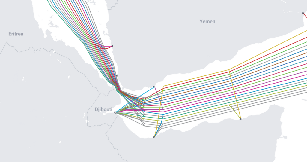 World’s longest submarine cable lands in Djibouti. At 45,000 km and circling the African continent, the subsea cable is the longest fiber optic cable in the world and connects three continents: Africa, Asia, and Europe, and 33 countries across 46 landing points.